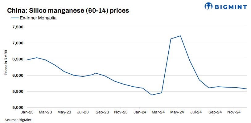 ZCE prices inch up: Silico manganese futures on China’s Zhengzhou Commodity Exchange (ZCE) for May 2025 delivery saw a slight rise of RMB 272/t ($37/t) to RMB 6,340/t ($865/t) on 13 January against RMB 6,068/t ($828/t) on 6 January.