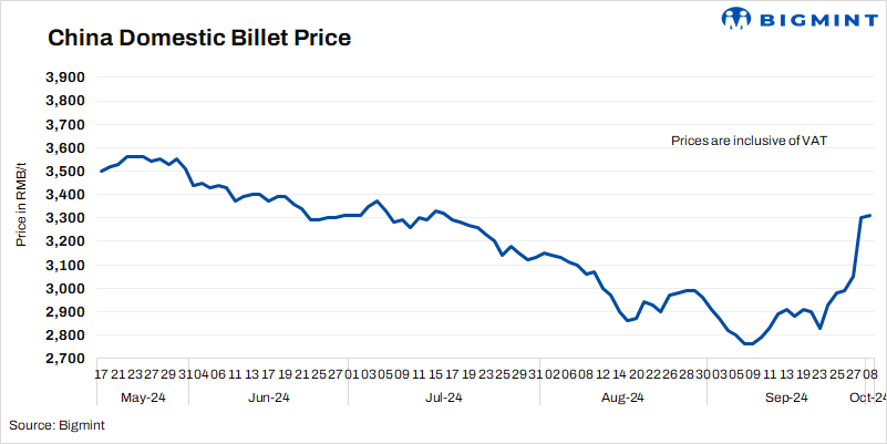 • The recent stimulus announcement and rising raw material costs bolstered billet prices. However, the market remains uncertain as it has reopened following the Golden Week holidays.