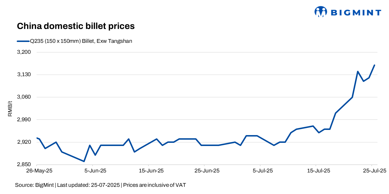 China: Steel billet prices rise by RMB 40/t ($6/t) d-o-d