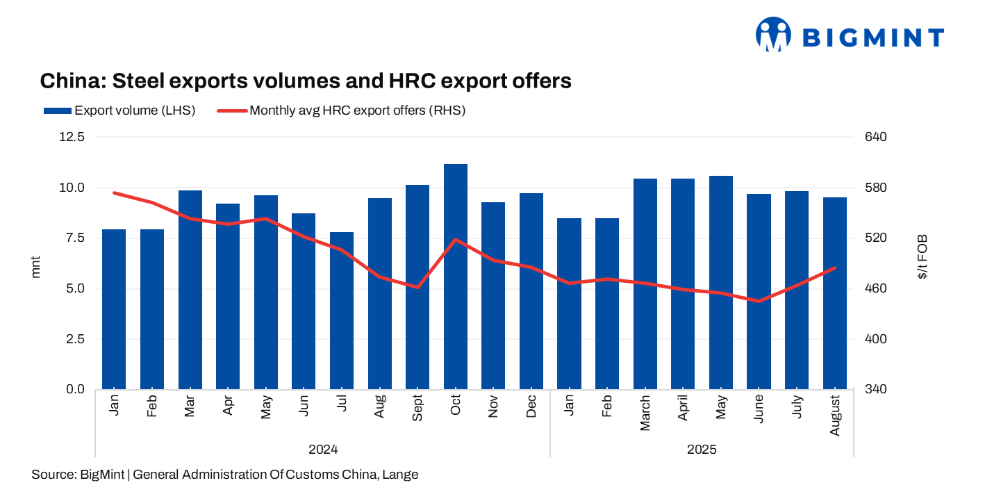 Demand contraction continues to weigh on market: Domestic steel demand in China remained sluggish in August, with subdued construction activity — a major steel consumer — weighing heavily on demand due to the persistent weakness in the property market.