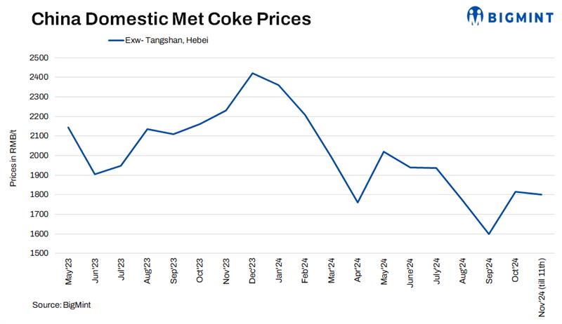 Chinese steel mills in Tangshan have implemented the second consecutive cut in met coke procurement prices, of RMB 50-55/t ($7-7.5/t), effective today. Reduced hot metal output brought down bids for met coke. Prices in Hebei’s Tangshan stood at RMB 1,760/t.