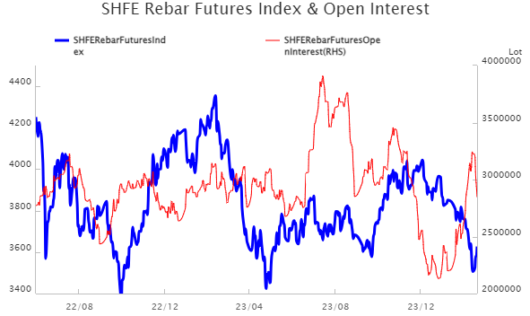 As fundamentals became the key focus, the rise in SHFE rebar open interest accelerated, reaching a four-year high last week. Consequently, the fall in rebar hastened.