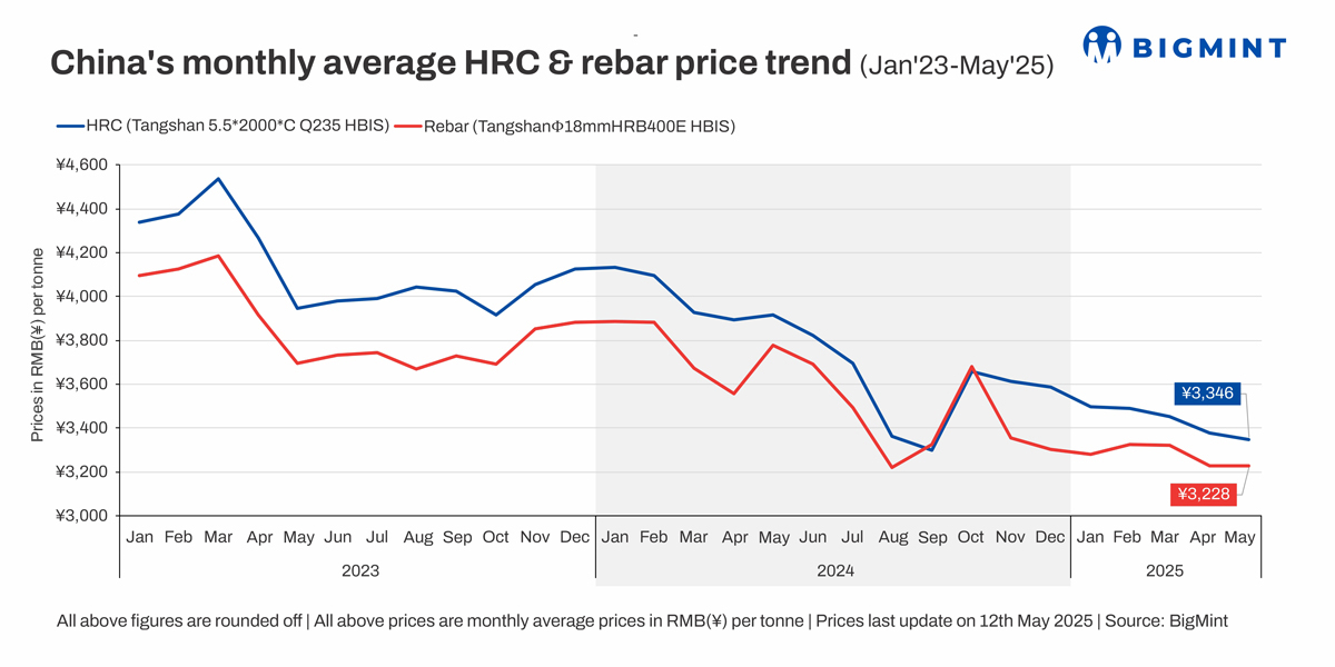 May Day, off-season lull slows buying: The May Day celebration over 1-5 May, 2025 slowed down whatever buying was happening in the market in the previous month. That apart, China is entering the traditionally dull steel demand season. The scorching summer, the core of which falls over June-August, along with frequent rains, reduces construction activity, and correspondingly, steel demand, which, in turn leads to production cutbacks and maintenance shutdowns by mills.