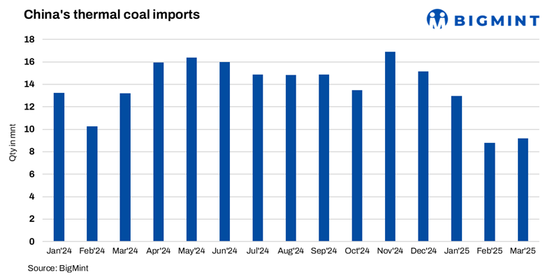 Mysteel Global: China’s thermal coal import market extended its weak performance on 13 May, with domestic buyers’ interest in overseas coal cargoes remaining subdued due to their lower cost-effectiveness.