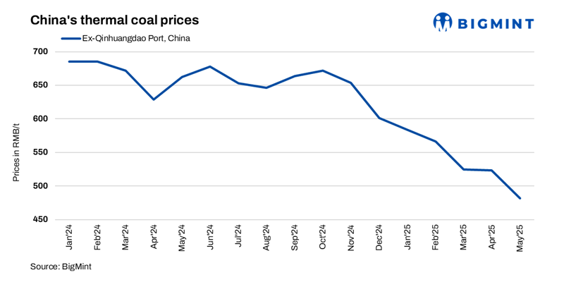 Mysteel Global: China’s thermal coal market extended its downturn for another month through May, with sluggish demand, swelling port inventories, and persistent oversupply plunging spot prices to their lowest levels since March 2021.