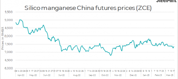 Silico manganese futures for May’23 delivery trading on the China’s Zhengzhou Commodity Exchange (ZCE) remained stable w-o-w to close at RMB 7,346/t ($1,067/t) on 17 Mar’23. In the physical spot market too, silico manganese (65-17) prices were stable w-o-w at RMB 7,125/t ($1,034/t), as per SteelMint’s assessment.