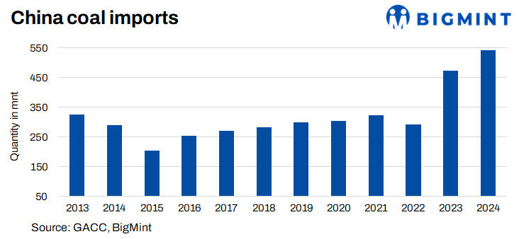 3. Competitive seaborne coal prices: Lower coal prices from major exporters like Indonesia and Australia led Chinese utilities, especially in the south, to prefer imported coal over more expensive domestic options.