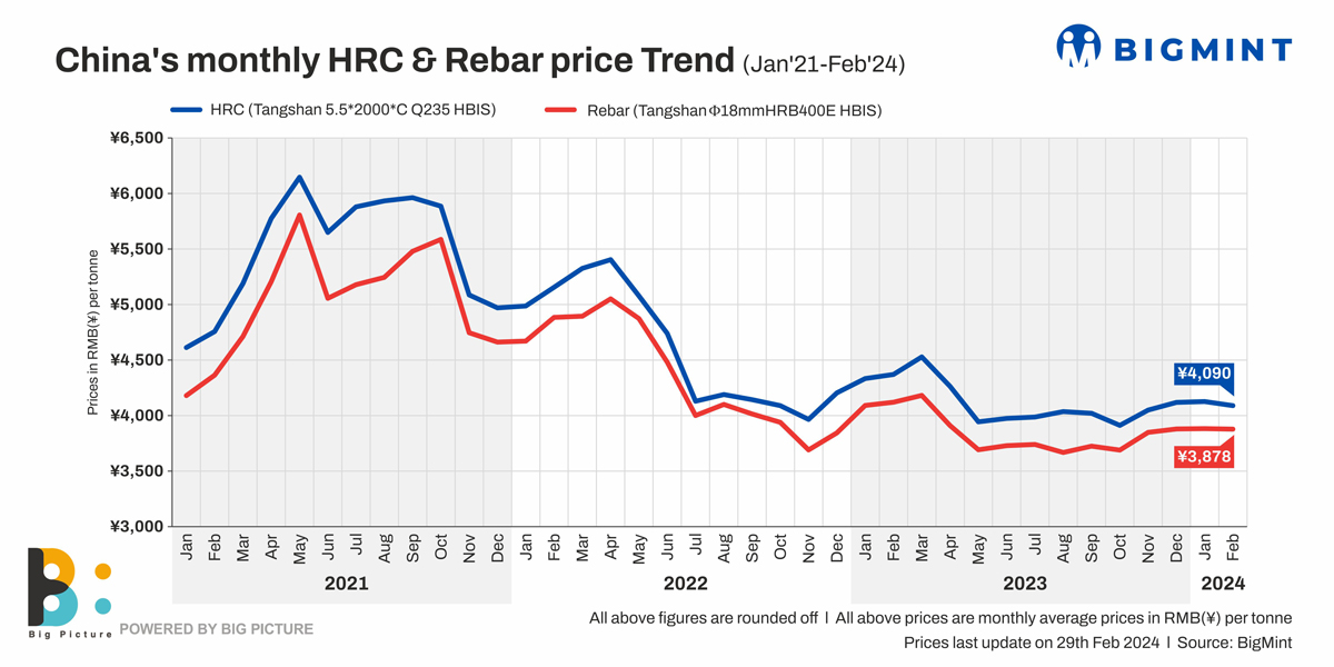 China’s construction steel prices to rise in Mar’24