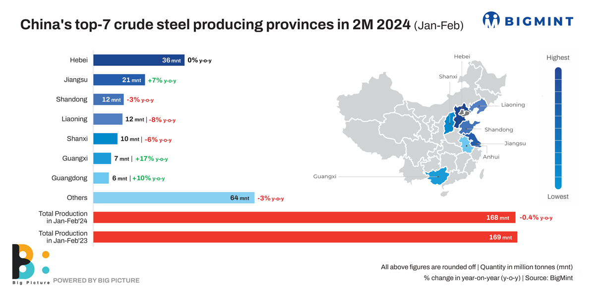 Morning Brief: China’s Hebei province, the largest producer of steel, showed a flat growth in the January-February, 2024 period while three of the country’s top seven crude steel-producing provinces recorded a y-o-y drop in this period.