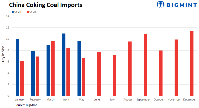 It noted the findings of another Mysteel survey that suggest the remaining months of this year might see a substantial net increase of 14.02 million tonnes (mnt)/year in domestic met coke production capacity. January-May saw 5.2 mnt/year (y) of new coke-making capacity commissioned, as Mysteel Global reported.