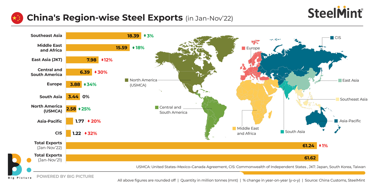 China’s Region-wise Steel Exports (Jan-Nov’22)