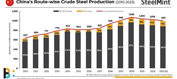 China’s steel production dropped a little over 1% to 1,018 million tonnes (mnt) in calendar 2022 against 1,033 mnt in the previous year. And the y-o-y production cuts will continue with a likely 2.5% expected in CY23. However, China is yet to announce any decision on the same yet. A 2.5% reduction on CY22 levels will mean around 25 mnt axed to attain 993 mnt in CY23.