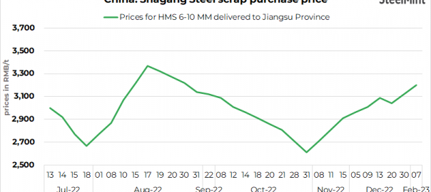 • China’s Shagang steel has increased scrap buy prices for the first time this month by RMB 80/t ($12/t) for all grades, effective 7 Feb’23.