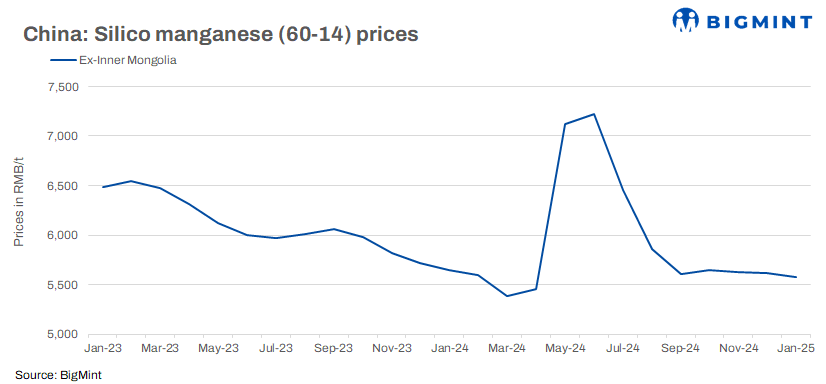 ZCE prices inch up: Silico manganese futures on China’s Zhengzhou Commodity Exchange (ZCE) for May 2025 delivery saw a slight increase of RMB 400/t ($77/t) to RMB 6,740/t ($920/t) on 20 January against RMB 6,340/t ($828/t) on 13 January 2025.