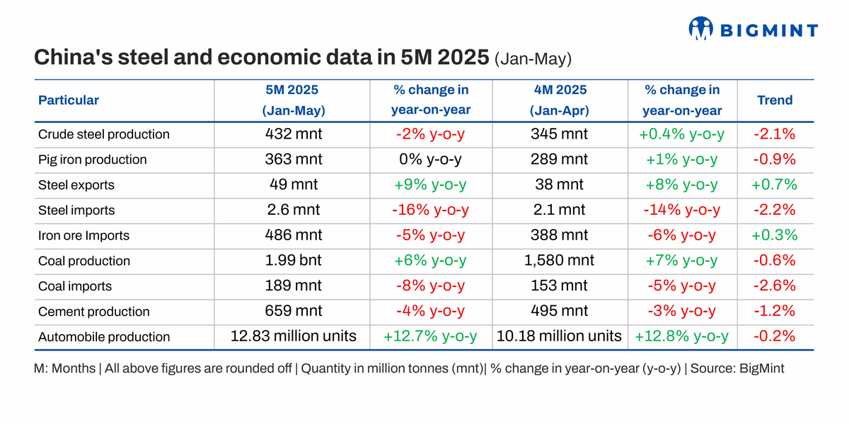China’s steel and economic data in 5M 2025 (Jan-May)