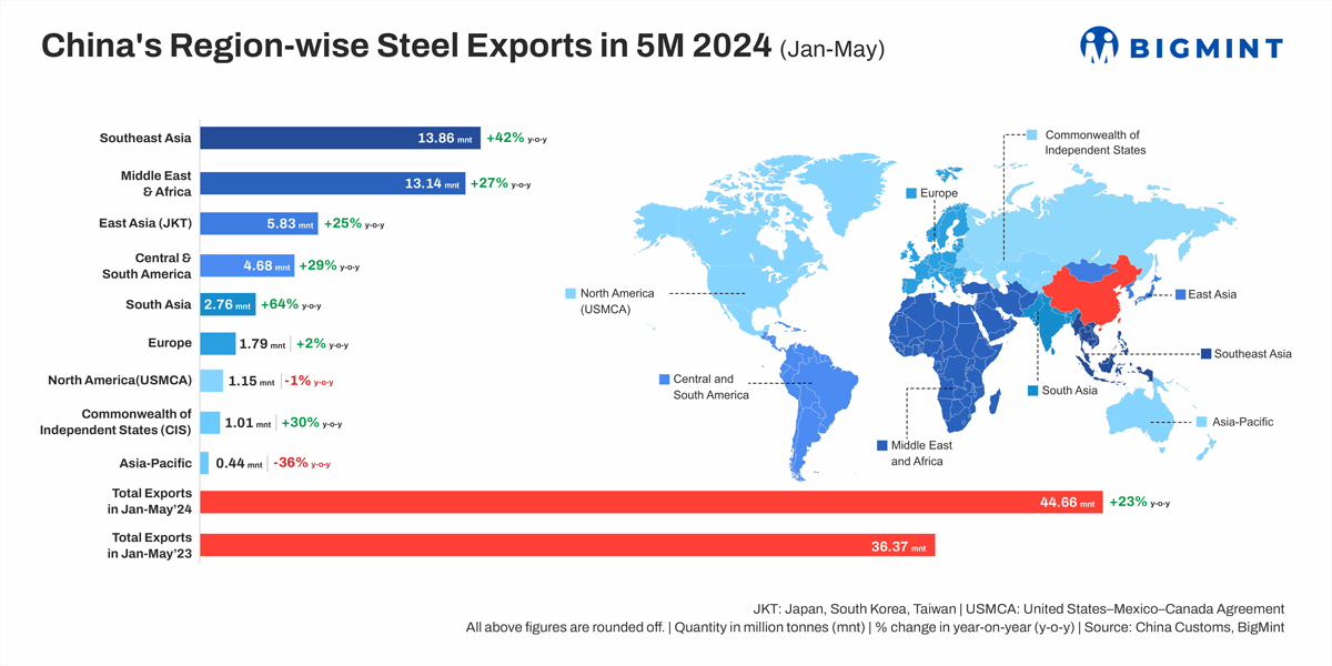 Factors that influenced China’s steel exports in Jan-May’24