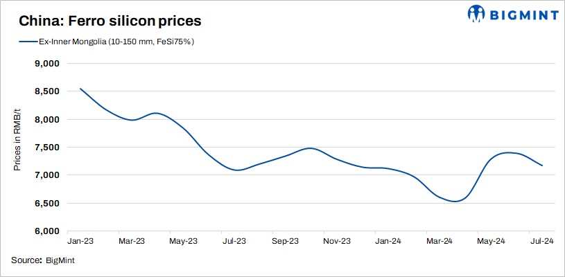 Ferro silicon futures inch up: China’s Zhengzhou Commodity Exchange (ZCE) for September 2024 delivery of ferro silicon inched up by RMB 134/t ($18/t) to RMB 7,018/t ($965/t) on 4 July, 2024 as against RMB 6,884/t ($947/t) on 27 June 2024.