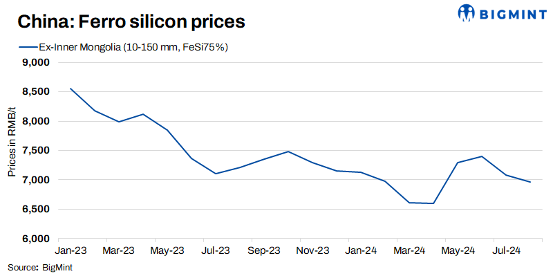 Ferro silicon futures dip: China’s Zhengzhou Commodity Exchange (ZCE) for September 2024 delivery of ferro silicon inched down w-o-w by RMB 48/t ($7/t) to RMB 6,704/t ($926/t) on 1 August, 2024 as against RMB 6,752/t ($932/t) on 25 July 2024.