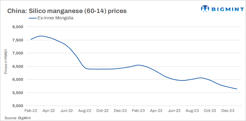 Prices of silico manganese in China remained unchanged w-o-w as the market was dull and some producers also reduced their production. The prices were at around RMB 6,310/t to 6,410/t ($879/t-$893/t). All prices were ex-works and inclusive of taxes.
