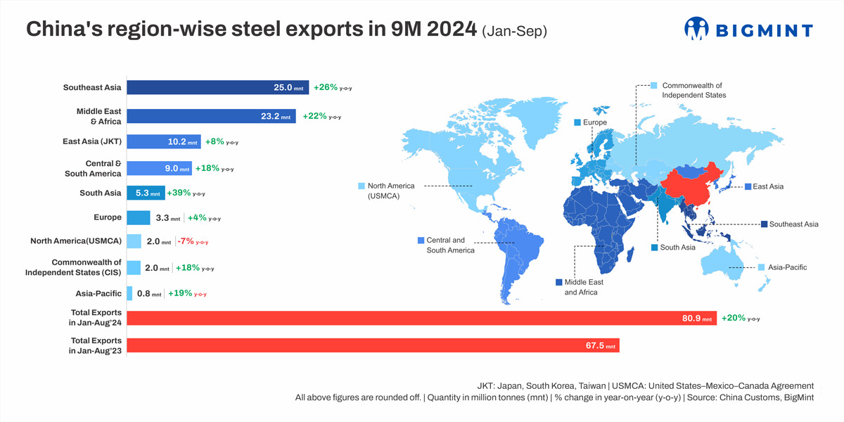 But, increasing global demand, especially from geographies seeing hectic economic development, and competitive pricing are likely to keep Chinese steel exports supported to an extent in 2025.