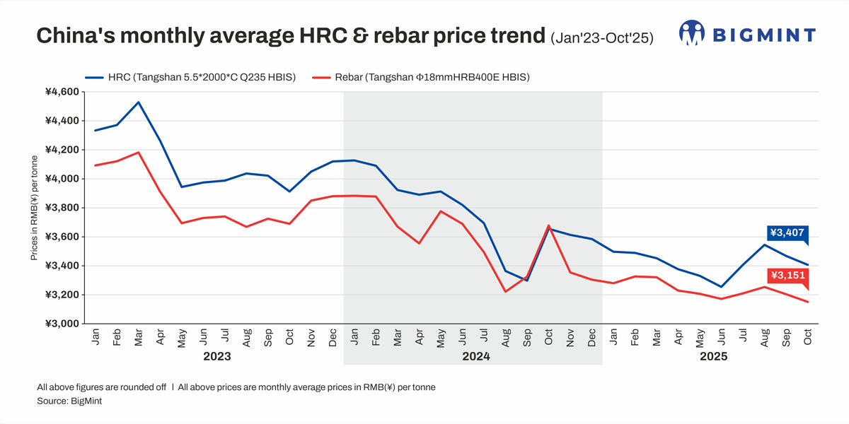 Chinese steel prices slide in early Oct’25