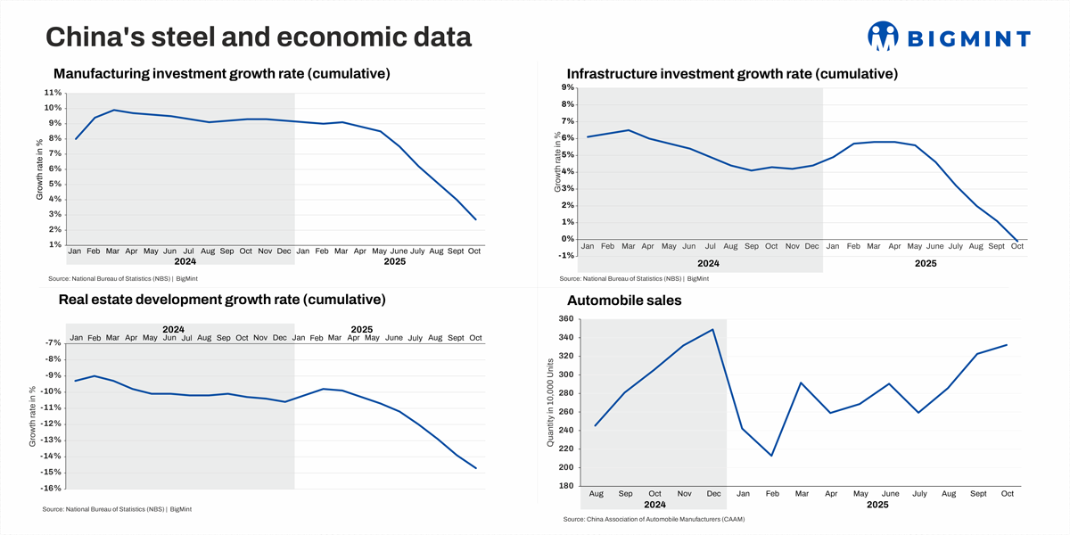 Chinese steel production drops 4% y-o-y in Jan-Oct’25 on sustained housing slump