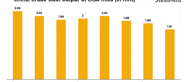 - The average daily finished steel output rose by 3.3% m-o-m to 1.97 mnt. The same increased by 0.9% y-o-y.
