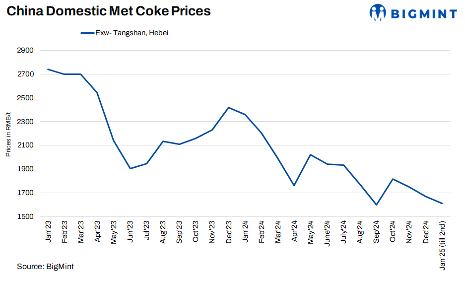 Mysteel predicted that these mills hot metal output in January will dip to a low of around 2.25 million tonnes/day, signalling a continued decline in their appetite for coke.