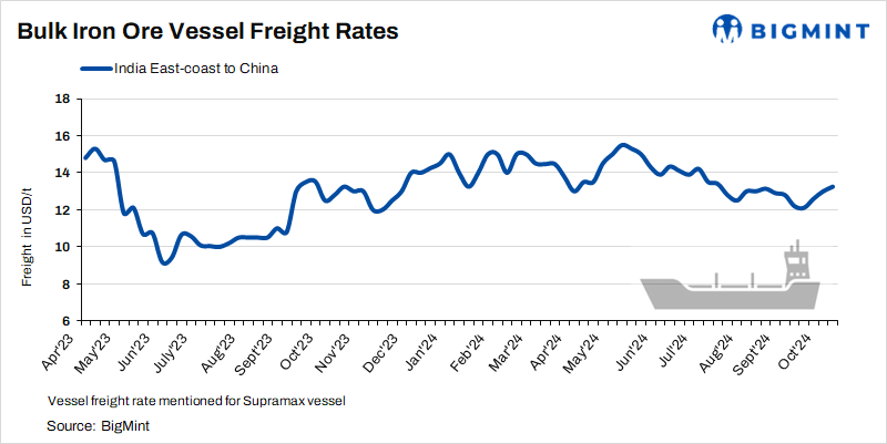 Meanwhile, according to BigMint’s assessment, Asia-Pacific Supramax dry bulk freight rates (50,000-55,000 tonnes) for iron ore shipments from the east coast of India to China increased by $0.25/tonne (t) w-o-w to $13.25/t as of 9 October.