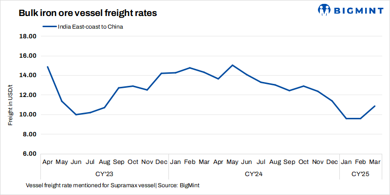 Dry bulk iron ore freights showed mixed movements w-o-w across different routes. Freights from India to China edged down this week following limited inquiries, a surplus of prompt tonnage, and subdued market activity across key regions. In the Indian Ocean, a lack of fresh cargo along the Indian coasts exerted downward pressure on rates, while a lengthy list of available vessels further restricted any potential rate increases.