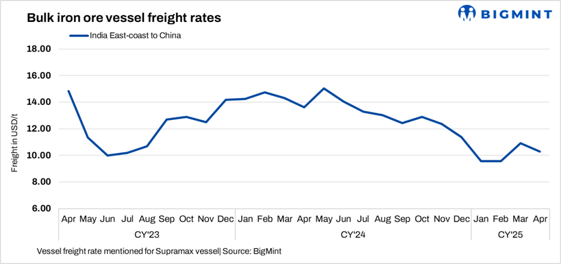 Dry bulk iron ore freights fall w-o-w except on India-China route
