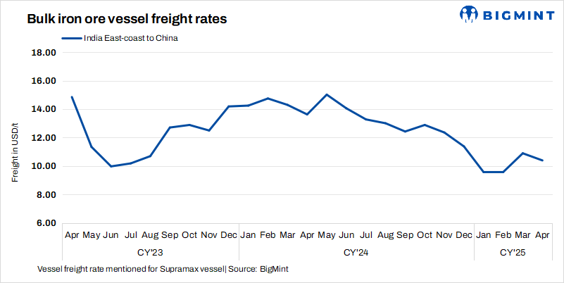 Dry bulk iron ore freights declined w-o-w despite a number of fixtures being recorded. Rates from India to China trended down this week amid sluggish market activity across the Asia-Pacific region. The ongoing Ramadan holidays in parts of Asia and the Middle East led to reduced trading, limiting fresh cargo inquiries. This decline in demand created an oversupply of tonnage, putting downward pressure on freights. Additionally, weak sentiment in the broader dry bulk market further contributed to the lacklustre conditions.