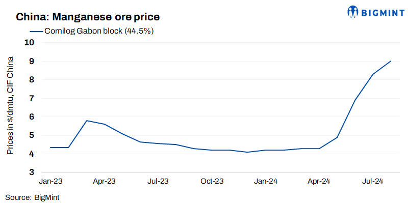 - Eramet, a leading manganese ore producer, posted robust H1CY’24 results with a 33% y-o-y increase in production at 3.5 mnt.