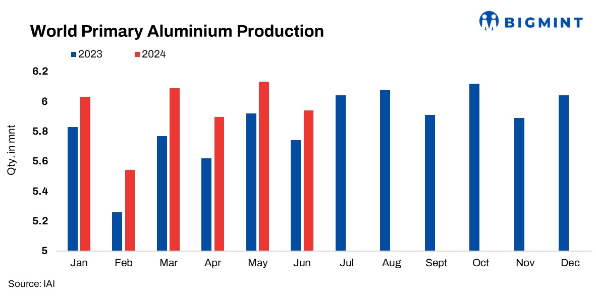 Global aluminium production fell 3% m-o-m in Jun’24: IAI