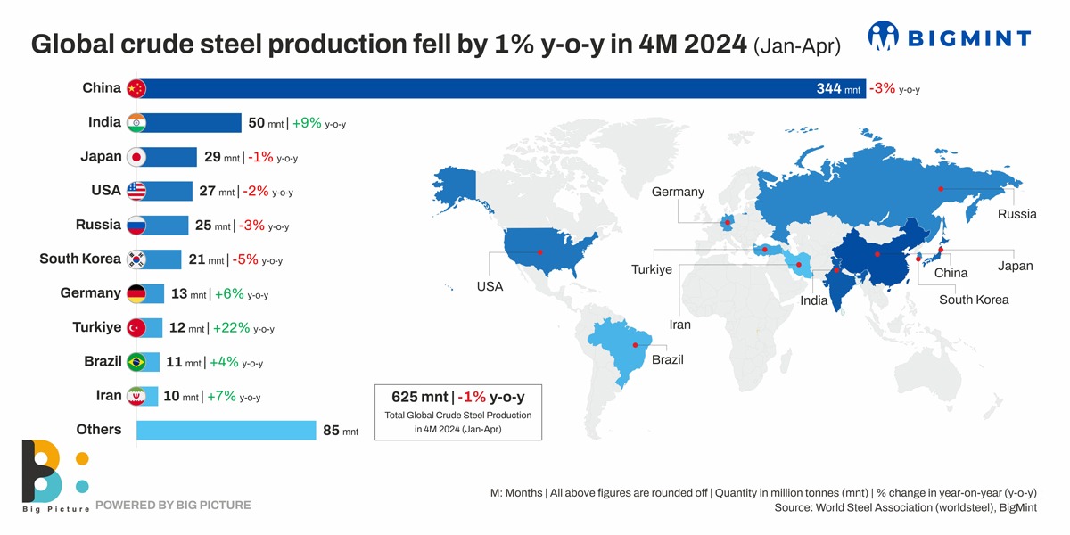 Morning Brief: Of the top ten crude steel-producing countries, five showed a decline over January-April, 2024.