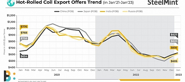 Morning Brief: Global hot rolled coil (HRC) export offers have climbed up in January 2023 to touch six-month highs, shows SteelMint’s data.