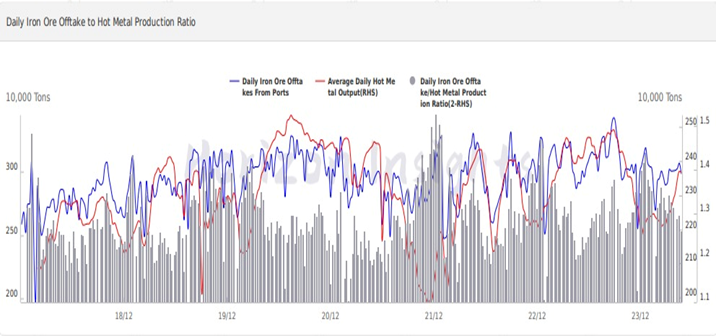 • Downstream willingness to purchase iron ore spot has not significantly increased alongside the rise in hot metal production, posing challenges for inventory management.