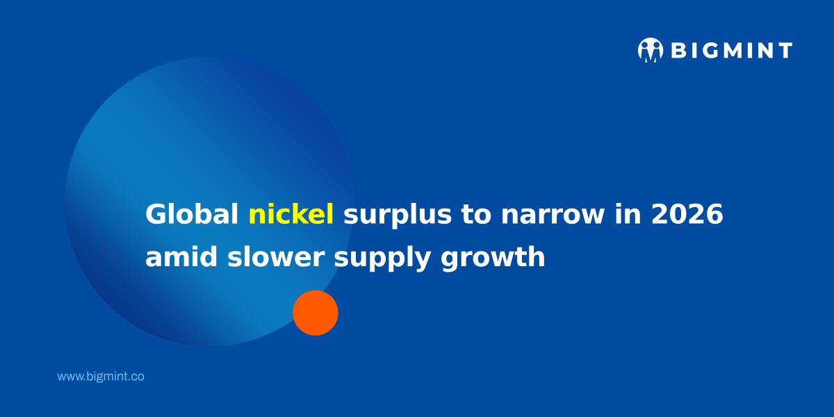 Global nickel supply is forecast at 3.83 million tonnes (mnt) in 2026, up marginally by 0.5% y-o-y, while demand is expected to grow at a faster pace of 3.2% to 3.66 mnt. The resulting surplus is estimated at 173,000 t, down sharply from 268,000 t in 2025.
