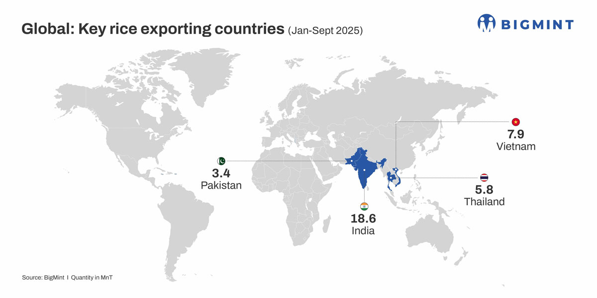 The global non-basmati rice market continues to experience ample supply, with exports from key regions rising y-o-y in January-September 2025.