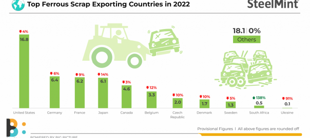 Morning Brief: Global seaborne ferrous scrap trade dropped almost 6% to 67 millon tonnes (mnt) in calendar year 2022 compared to 71 mnt in the preceding year, as per SteelMint data.
