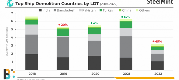 Turkey, which is the fourth-largest ship dismantler, saw tonnage dropping over 50% last year. It may see volumes declining further this year because of the earthquake.