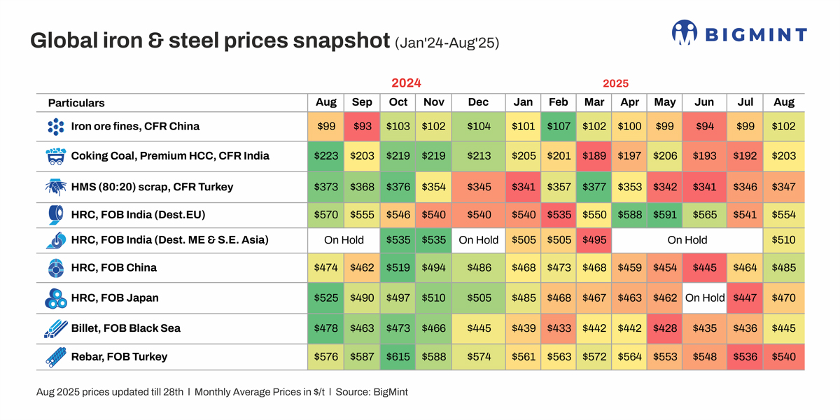 Morning Brief: Global steel and raw material prices witnessed a m-o-m recovery in August 2025, with China, the primary market-mover, witnessing bullish sentiment amid production restrictions. Chinese met coke supply tightened, which pushed up raw material costs and provided robust price support to finished products. This propelled prices in other regions and commodities.