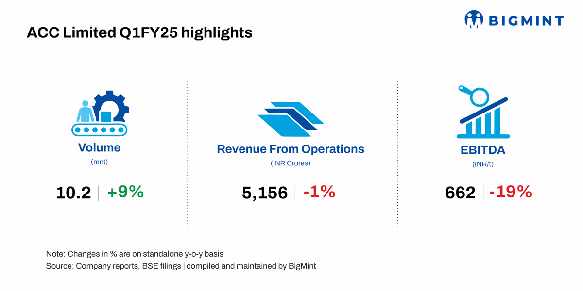 India: ACC Limited’s sales volumes up 9% y-o-y in Q1FY’25