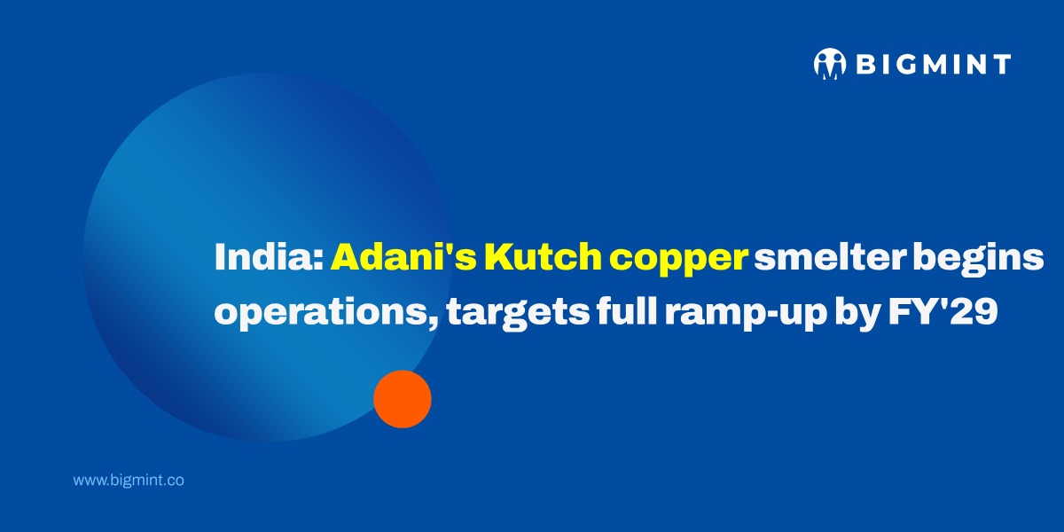 Adani’s Kutch Copper plant in Gujarat has begun operations, marking a major step to reduce India’s import dependence. The 500,000 tpa smelter, delayed due to global feedstock shortages, has started processing ores and aims to scale up to 1 mnt by FY’29. Reaching full capacity may take up to 18 months, amid tight global concentrate supply and declining smelting margins due to competing new capacity worldwide, as per sources.