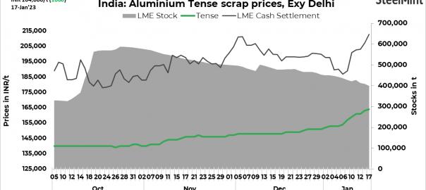 - India’s domestic aluminium scrap prices (of all grades except taint tabor) saw an uptick today.