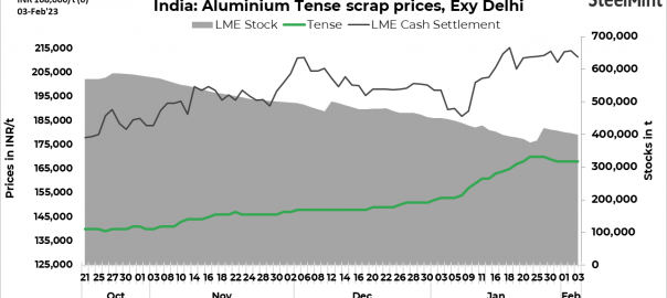 - Tense scrap: INR 168,000/t ($2,051/t)
