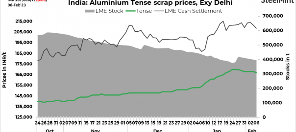 India’s domestic aluminium scrap prices saw a marginal decline d-o-d today. Current prices-