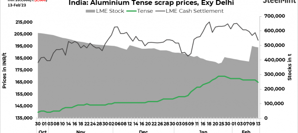 - Tense scrap prices stood at INR 165,000/t ($1,995/t), utensil grade at INR 173,000/t ($2,093/t) and extrusion grade at INR 180,000/t ($2,177/t).