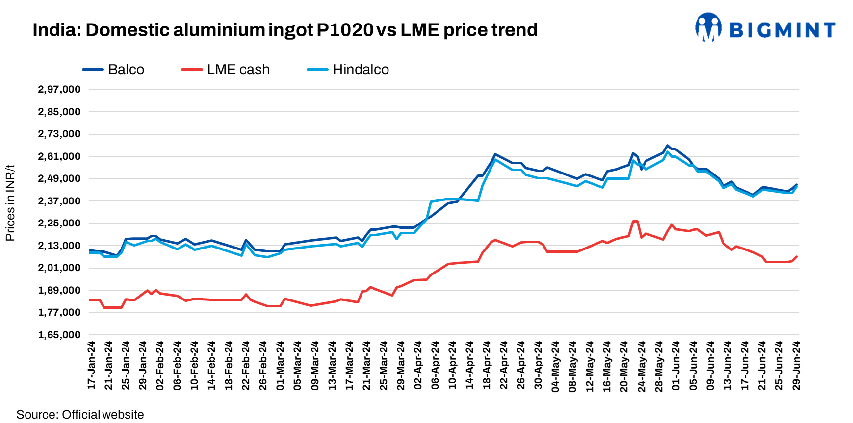 India’s primary producers have increased aluminium ingot (P1020, 99.7%) prices by up to INR 3,500/t ($42/t) today. Balco’s prices are at INR 246,000/t ($2,951/t) and Hindalco’s at INR 245,000/t ($2,939/t). All prices are ex-works and exclude GST. At the time of reporting, aluminium futures on LME stood at $2,517/t.