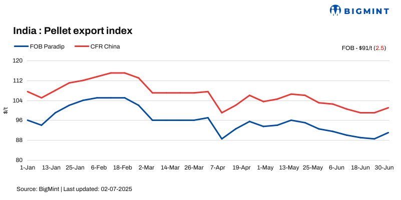 An India-based pellet-maker recently concluded a 50,000 t export deal (Fe64%, alumina<2%), scheduled yesterday. The deal was recently heard concluded at $101.5-102/t FOB India, sources said. The recent hike in global iron ore prices and higher grade of pellets in the tender supported the deal prices. Their last 50,000 t (Fe63%, 2.5% alumina) deal was closed at around $96/t FOB India, mid-June.